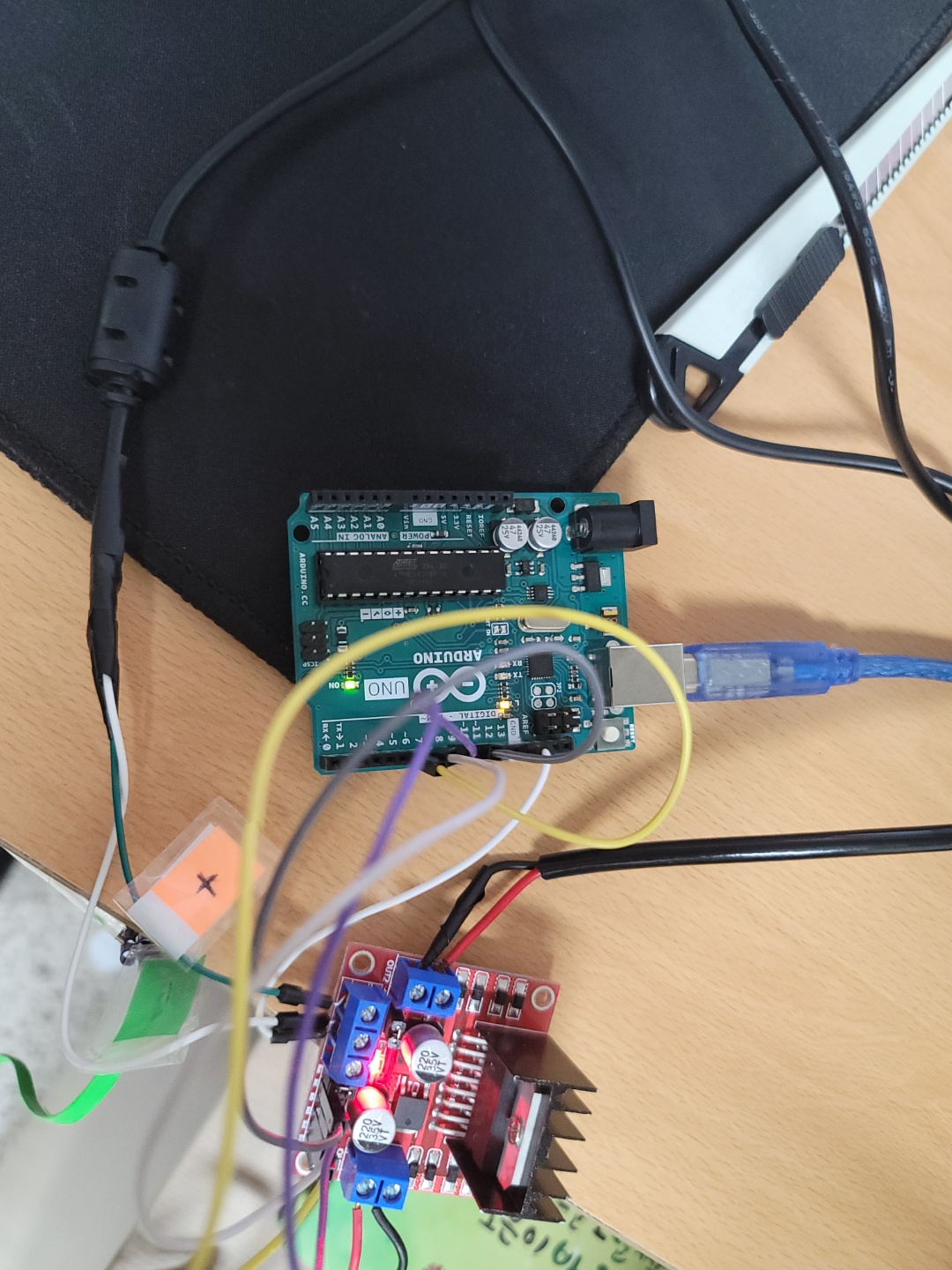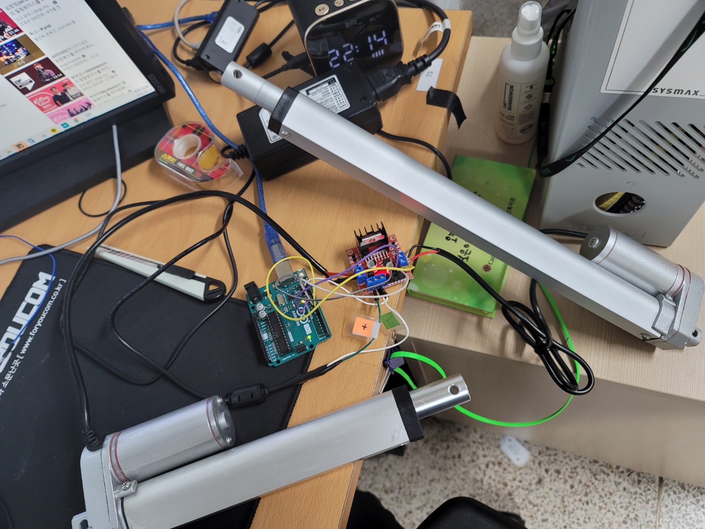 아두이노 우노, L298N, LinerActuator, DC 12V 3.5A 직류전원장치를 사용하였습니다